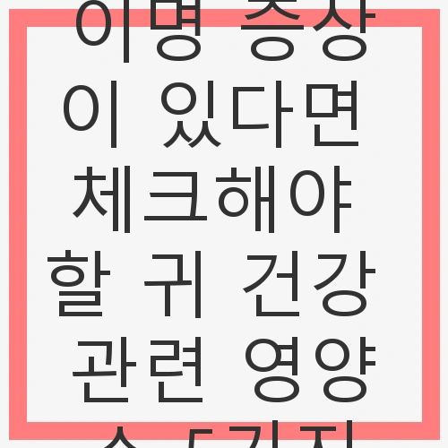 이명 증상 개선에 도움이 되는 귀 건강 영양소는 무엇일까요? 여러 연구와 전문가 의견을 바탕으로, 귀 건강을 지키고 이명 증상 완화에 도움이 되는 필수 영양소 다섯 가지를 소개합니다.